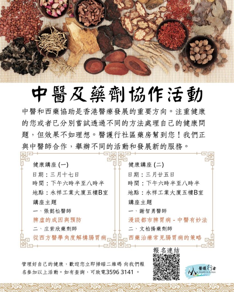 藥房破天荒首次與中醫師合作,以中西醫學不同的方向向大家講解脾虛、腸胃不適的成因及處理方法。如您有腸胃問題、或對講座有興趣,歡迎您填妥網上表格報名參加!