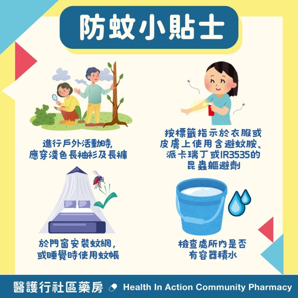 2️⃣按標籤指示於衣服或皮膚上使用含避蚊胺、派卡瑞丁或IR3535的昆蟲軀避劑