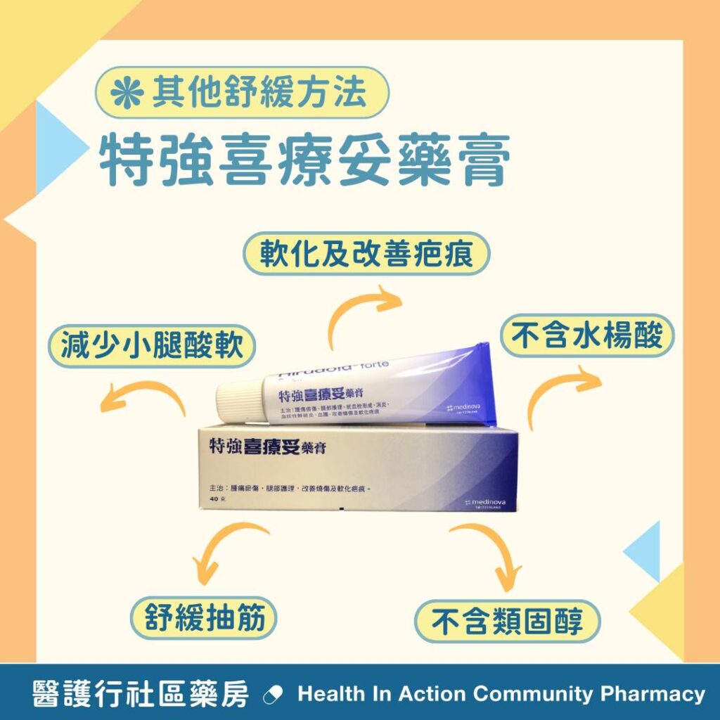 各位打工仔試完物理治療師嘅小貼士,亦可以使用埋具舒緩性質嘅藥膏。以本藥房有售嘅特強喜療妥藥膏為例,當中含MPS通青筋配方,有助舒緩肌肉疲勞,加速受傷部位嘅復原情況👍🏻👍🏻。無論想舒緩腳部不適,定係加快疤痕修復速度都係事半功倍。