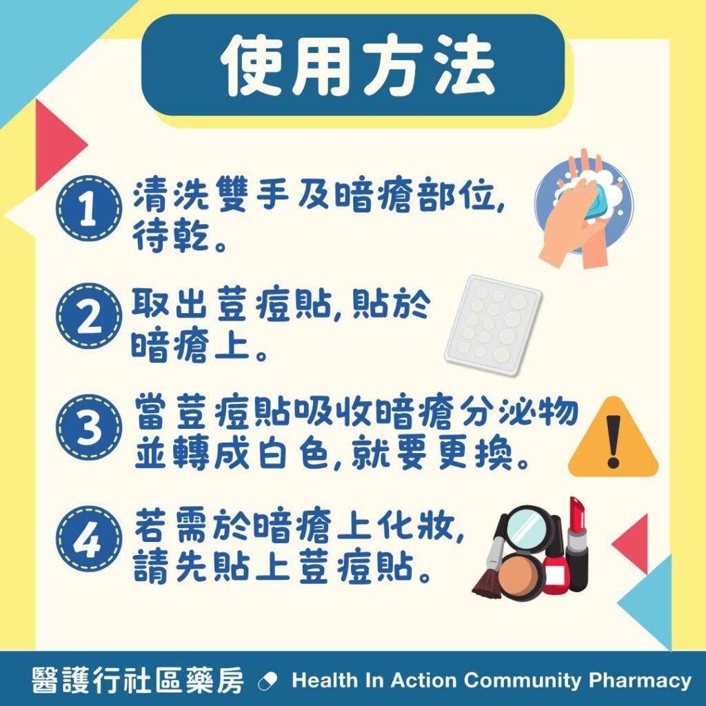4️⃣若需於暗瘡上化妝,請先貼上荳痘貼。