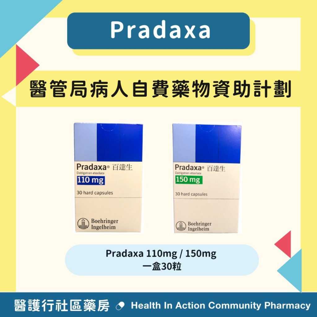 醫護行社區藥房提供醫管局病人自費藥物資助計劃😊合資格人士持有效醫管局發出的醫生處方,即可以優惠價前來配「Pradaxa」💊 (不需要預約;前來前可先致電查詢)