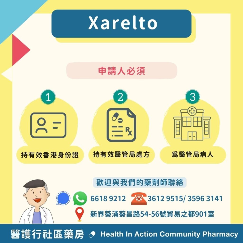 醫護行社區藥房提供 醫管局病人自費藥物資助計劃😊 合資格人士持有效醫管局發出的醫生處方,即可以優惠價前來配「Xarelto」💊 (不需要預約;前來前可先致電查詢)