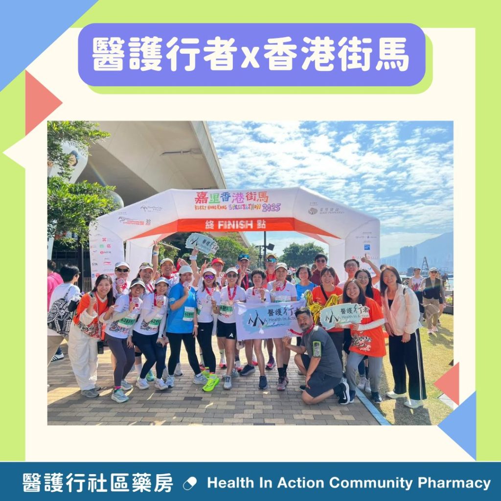 11月21至22號選手包派發日,醫護行社區藥房設立了資訊攤位,與跑手面對面交流,分享痛症自我護理的小貼士,例如緩解肌肉緊張、處理跑後酸痛、預防常見運動勞損等,以易明又實用的方式協助大家安心備戰。不少市民對於藥房能提供的健康支援都感到十分有興趣,讓大眾進一步接觸到社區藥房的概念及認識藥劑師。