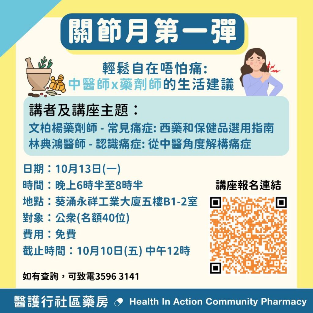 第一彈推廣特別安排藥劑師同中醫師講座,針對痛症提供各類生活建議,由唔同角度幫街坊們解決痛症疑難💢💢