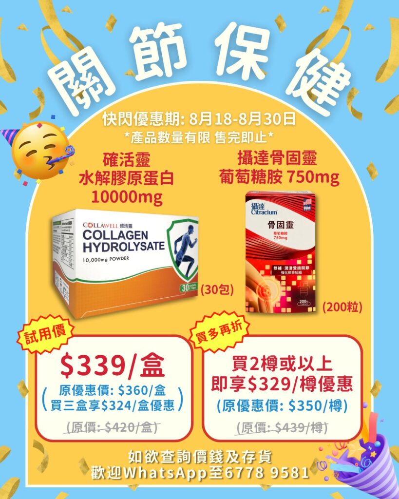 留意到好多街坊都比較重視關節健康,特別推出兩款人氣保健品優惠,齊齊守護你嘅關節!