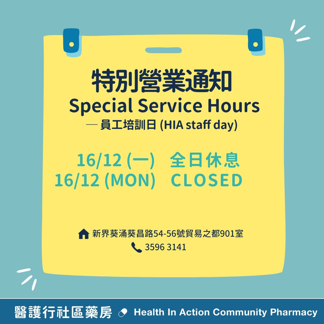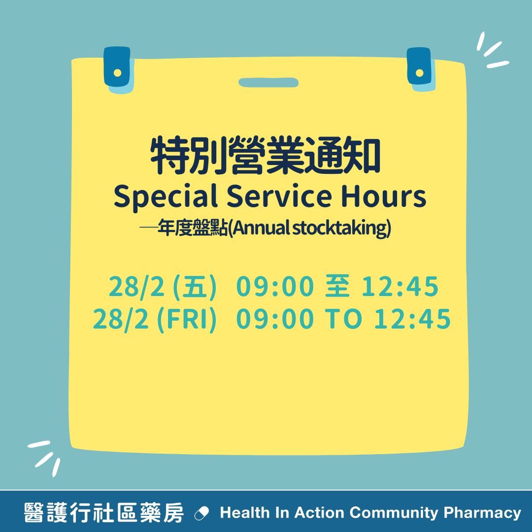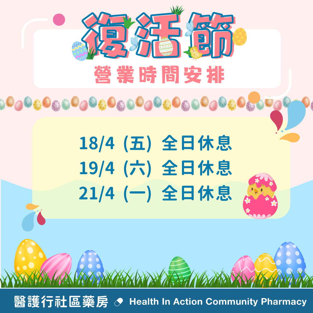 復活節長假期將至,為免大家摸門釘,以下係我哋嘅特別營業時間安排: