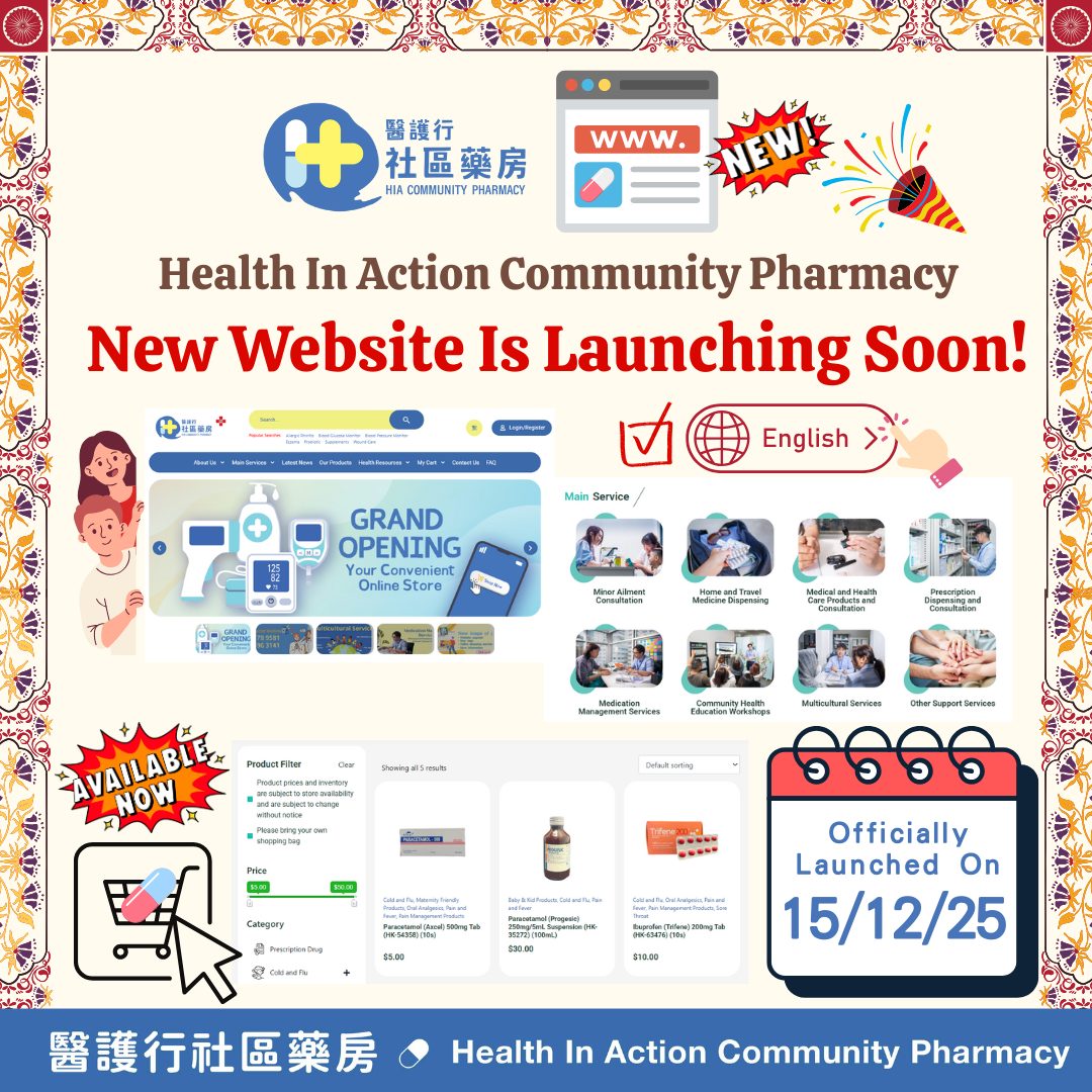 Pharmacist Hotline 6778 9581 - Our Online Shopping Service has officially launched! Scroll down and Click “Online Shopping Picks” to see what’s available! - 🔔Holiday Special Business Hours🔔 Christmas Eve 24/12 (Wed): 09:00 to 12:45, 14:00 to 15:45; Christmas Day 25/12 (Thu): Closed all day; Boxing Day 26/12 (Fri): Closed all day; New Year’s Eve 31/12 (Wed): 09:00 to 12:45, 14:00 to 15:45; New Year’s Day 1/1/2026 (Thu): Closed all day