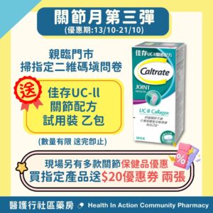 關節硬晒呔,行路跑步都無以往咁靈活?全新關節保健品─佳存 UC-II關節配方(30粒)幫到你,30日重建關節健康,90日全面提升5大行動力(跑步、行路、上樓梯、踎低、彎腰)!