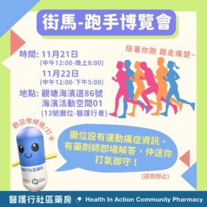 2025年「街馬 ― 跑手博覽會」將至🏃🏻♀️🏃🏻💨,今年醫護行者將會係13號攤位同大家互動。除了拎選手包,歡迎大家搵我哋傾吓偈 / 打卡🤳🏻。屆時攤位設有多款運動痛症資訊,有藥劑師即場解答,仲送你打氣御守!有我哋陪着你跑,踢走痛楚🥳