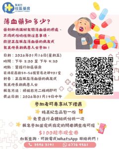 踏入2025年尾聲,本藥房繼續陪你健康同行。今日起,只要追蹤醫護行社區藥房 Facebook或Instagram,向藥房職員展示後就可以換領「醫護行社區藥房2026年月曆」乙本