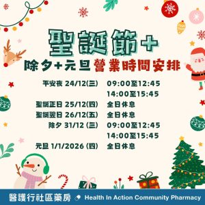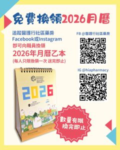 踏入2025年尾聲,本藥房繼續陪你健康同行。今日起,只要追蹤醫護行社區藥房 Facebook或Instagram,向藥房職員展示後就可以換領「醫護行社區藥房2026年月曆」乙本