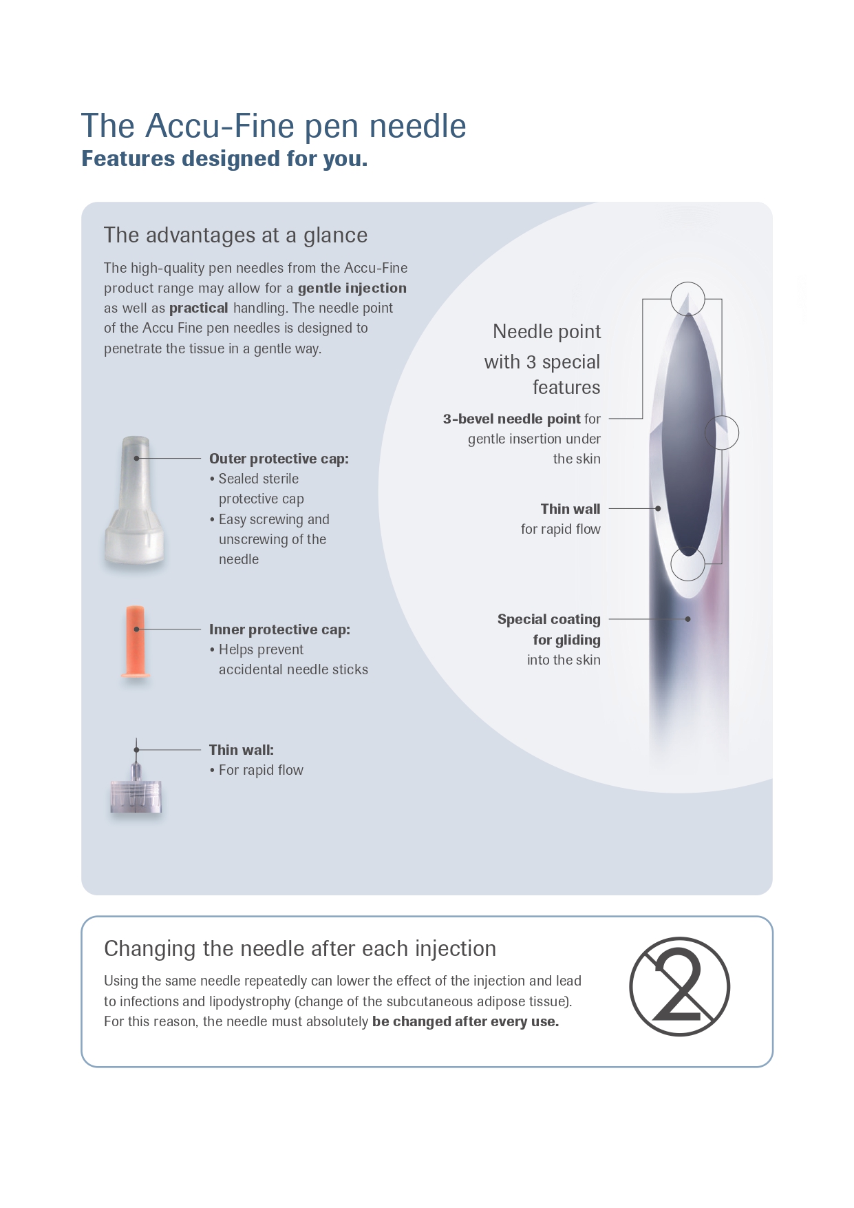 適用於絕大部分胰島素筆(例如NovoPen、SoloStar、HumaPen)及糖尿筆(例如Victoza Pen、Byetta)